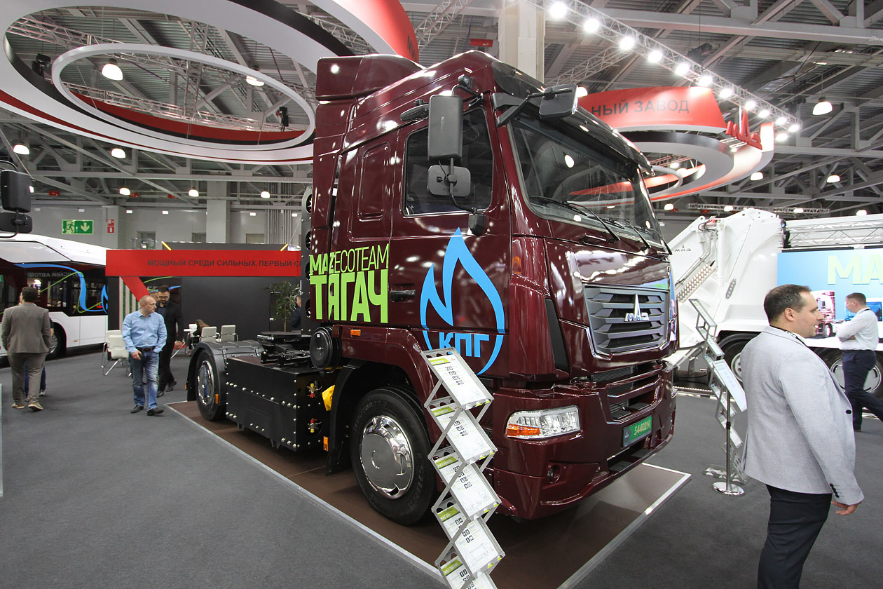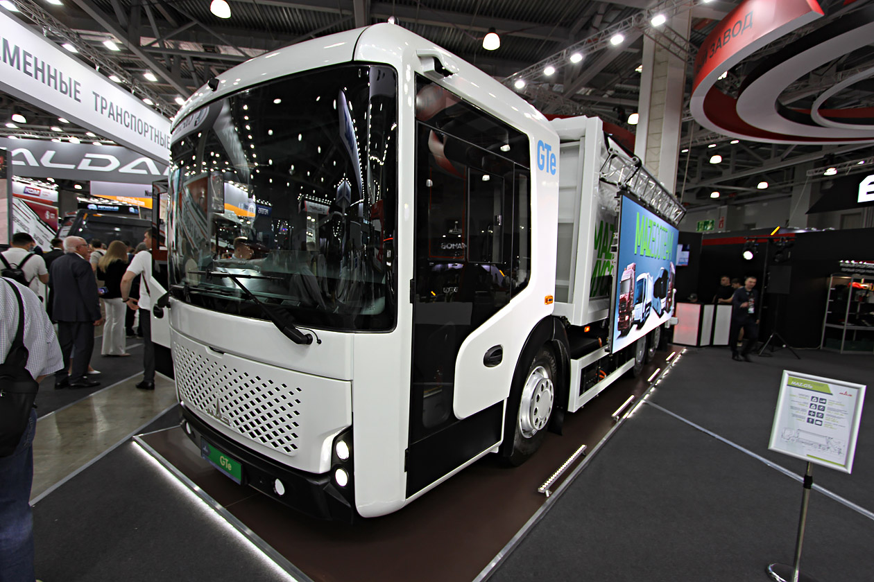 Белорусский МАЗ не перестает удивлять: помимо седельных тягачей, приспособленных для работы на природном газе, один из которых оборудован для работы на сжатом природном газе (419 л. с., 1292 литра, 590 км), другой — на сжиженном (420 л. с., 930 литров, 1140 км), был представлен футуристический мусоровоз на электротяге. МАЗ-GTe полной массой 26 500 кг имеет бункер на 20 куб. м, который способен принять 10 тонн отходов. Емкость батарей — 253 кВт·ч. Правда, ничего не сообщается о запасе хода. Хотя на самом деле это мировой тренд: такие мусоровозы давно выпускает «Большая европейская семерка» и американские Mack и Oshkosh.
