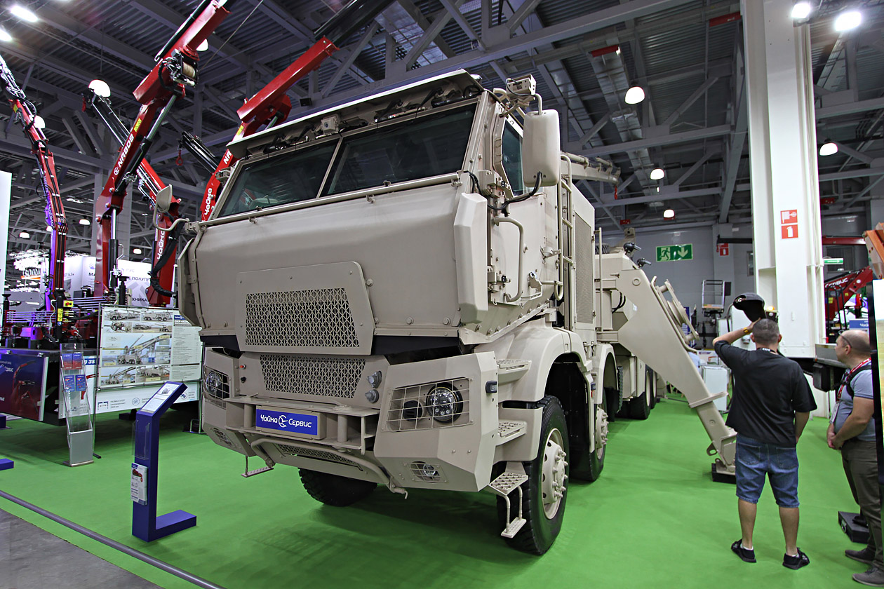 На этот раз к монстроподобным карьерным самосвалам КАМАЗ‑4555 «Атлант 50» и КАМАЗ‑65685 «Атлант 65» присоединился эвакуационный тягач от «Чайка-Сервис» на шасси К‑53958 (читай: «Ремдизель»). Машина предназначена для эвакуации военной техники полной массой до 45 тонн с максимальным усилием вытаскивания до 80 тонн и выполнения грузоподъемных работ. Предусмотрено и гражданское исполнение — естественно, в другом обличье.