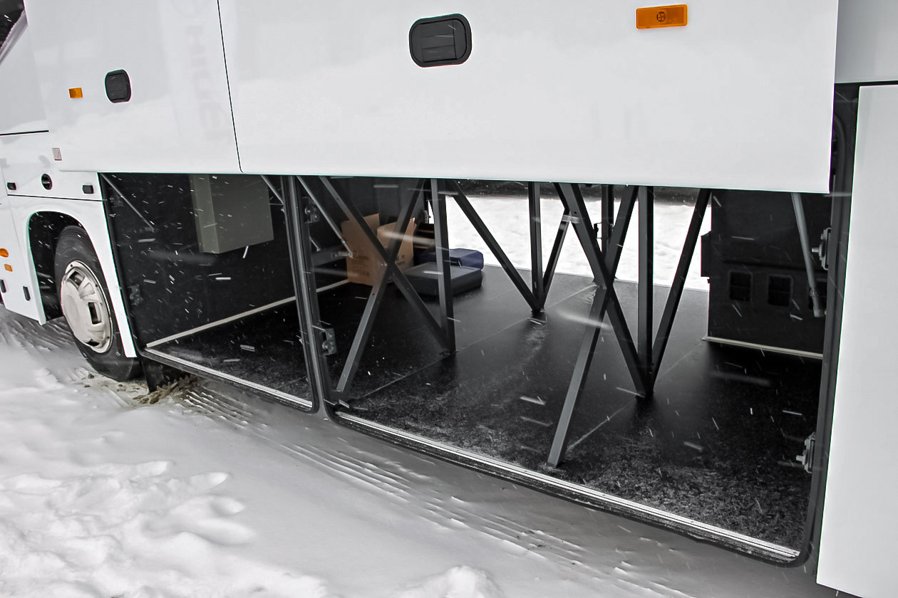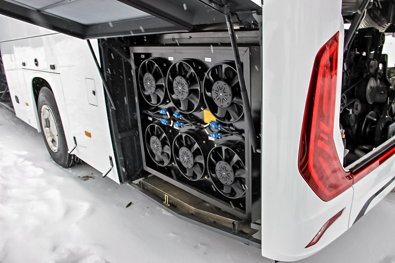 Для большей надежности все коммуникации проложены в едином пространстве с удобным доступом к ним из багажного отсека. Из особенностей также стоит отметить использование контроллера домена, сокращающего количество проводки и упрощающего ТО.