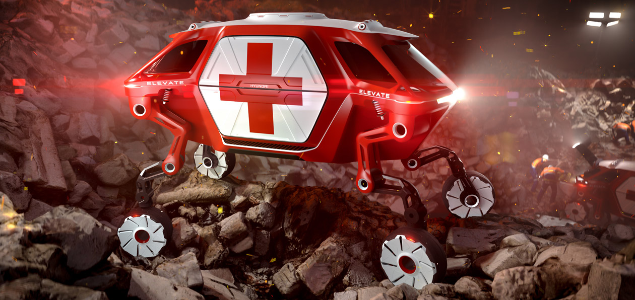 Потребность в эффективной и быстрой перевозке пострадавших в бедствии натолкнула Hyundai на создание транспортного средства с подвижными «ногами».