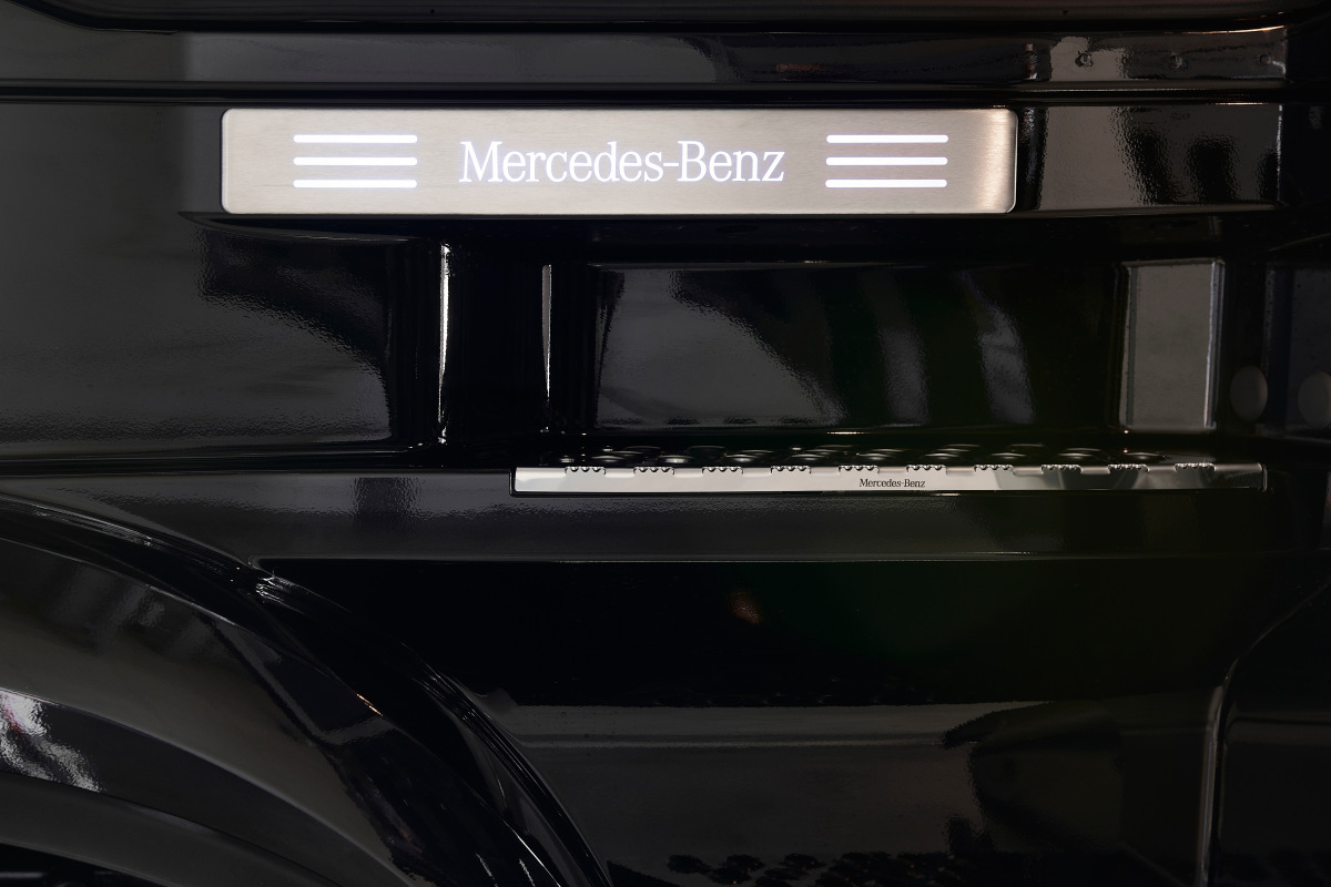 Название спецверсии расположено на солнцезащитном козырьке эксклюзивных «Актросов» (козырек также имеет четыре светодиодных модуля) и шильдиках на дверях, а над подножкой размещены подсвеченные логотипы Mercedes-Benz.