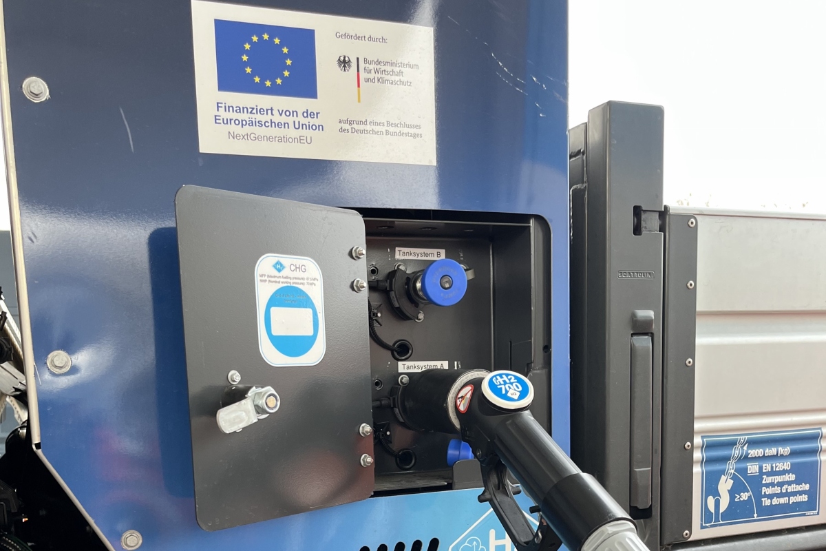 Дополнительно установлены баки, системы безопасности и мониторинга. Колесная база и длина платформы рассчитаны таким образом, чтобы резервуары для водорода можно было установить за кабиной. Четыре сертифицированных TÜV-резервуара высокого давления на 700 бар вмещают в общей сложности около 14 кг газообразного водорода.