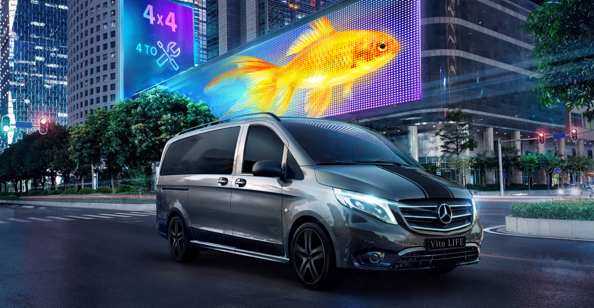Еще одной новинкой «Комтранса 2019» от Mercedes-Benz станет полноприводный микроавтобус Vito Life со 190-сильным дизелем. От стандартного Vito автомобиль внешне отличается эффектной оклейкой, функциональными накладками на пороги, 19-дюймовыми колесными дисками в стандартной комплектации. В списке штатного оснащения также – климат-контроль Thermotronik, две сдвижные двери с электроприводом, автомагнитола Audio 15, рейлинги на крыше, система освещения ILS.