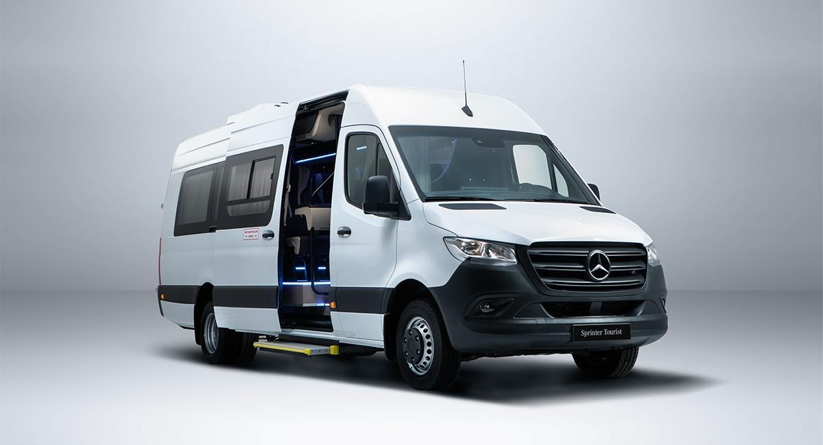 В версии Ultimate автомобиль оборудован также USB-розетками и откидной полочкой для мобильных устройств в сиденьях. Над каждым сиденьем расположены индивидуальные блоки управления микроклиматом и подсветкой и полочки для хранения вещей. Задний ряд сидений поднят для увеличения багажного отсека. Стоимость такого туристического автобуса на базе нового Sprinter – от 4 300 000 рублей.
