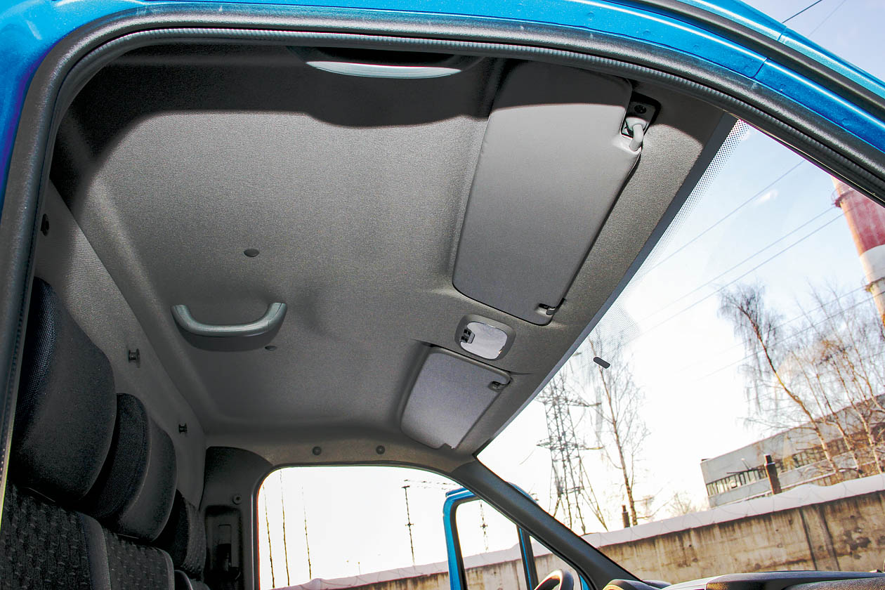 Просторная и комфортабельная кабина «ГАЗона Next» практически полностью повторяет газелевскую, но есть и отличия. Так, «ГАЗон Next» укомплектован подрессоренным водительским сиденьем с анатомической поддержкой, пятью уровнями регулировки и поясничным подпором. При необходимости машину можно оснастить 2DIN-магнитолой с клавишами управления на руле и климатической системой Delphi с функцией обогрева ветрового стекла. К сожалению, в моем случае ничего этого не было, зато на потолке обнаружилось место под установку тахографа. Как следствие, исчезла потолочная ручка для среднего пассажира.
