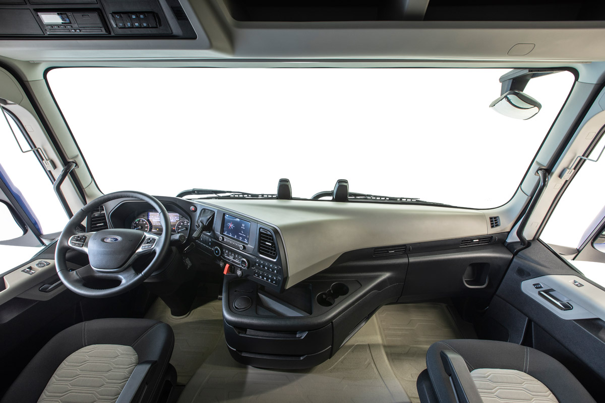 Из особенностей комплектации нового фордовского тягача стоит отметить наличие таких систем как настраиваемый круиз контроль Max Cruise, систему экономичного ускорения при разгоне после замедления, систему стабилизации (ESP), систему контроля курсовой устойчивости, помощь при трогании на подъеме и систему гибридного торможения.
