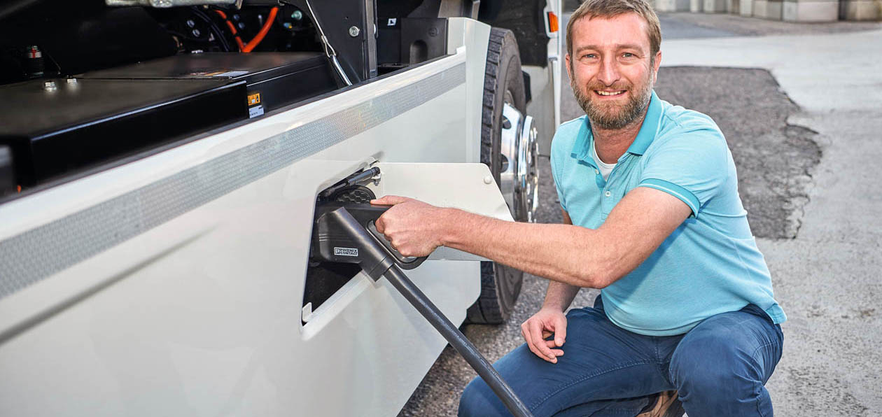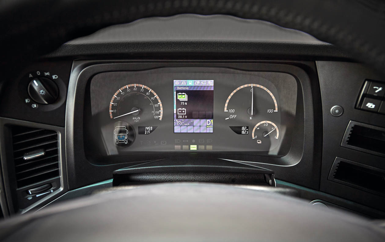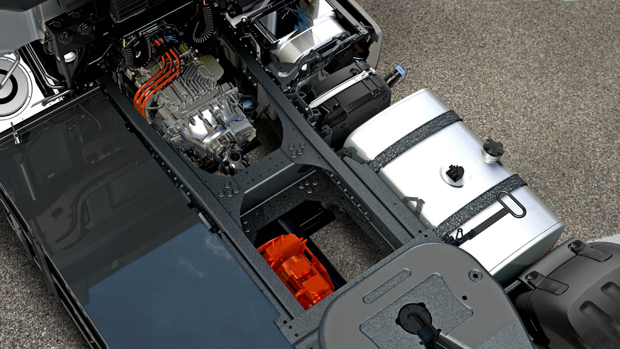 Питание на электродвигатель подается с блока аккумуляторов отдачей 85 кВт/ч, что позволяет добиться запаса хода в 30–50 км на полностью электрическом приводе с нулевым уровнем выбросов (в зависимости от полной массы автопоезда). Аккумуляторы могут заряжаться от дизельного двигателя во время движения автомобиля по автомагистрали или при помощи зарядного устройства постоянного тока на станции для зарядки. На автомобиле предусмотрена возможность быстрой зарядки аккумуляторов: полная зарядка займет 30 минут, а для зарядки на 80% потребуется всего 20 минут.