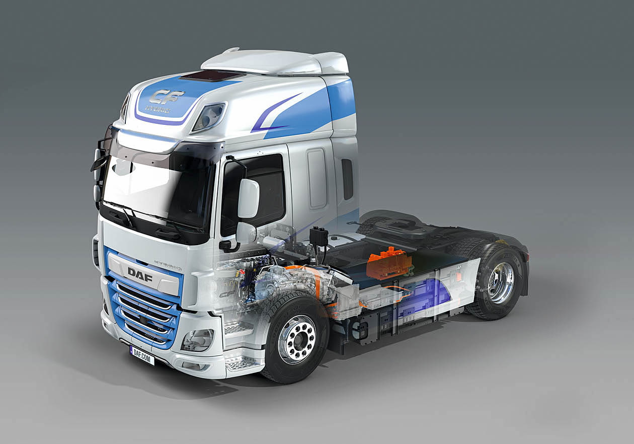 Свой гибридный грузовик представила и DAF Trucks. Модель CF Hybrid разработана с целью использования в городской черте исключительно электрического привода для обеспечения нулевого уровня выбросов, а также значительного повышения запаса хода вне городских зон за счет новейшей ультрачистой дизельной технологии. DAF CF Hybrid оснащен высокоэффективным двигателем PACCAR MX-11 объемом 10,8 литра (450 л. с.) и электродвигателем ZF (75 кВт, в пике 130 кВт) в сочетании со специальной коробкой передач ZF Traxon для гибридных трансмиссий.