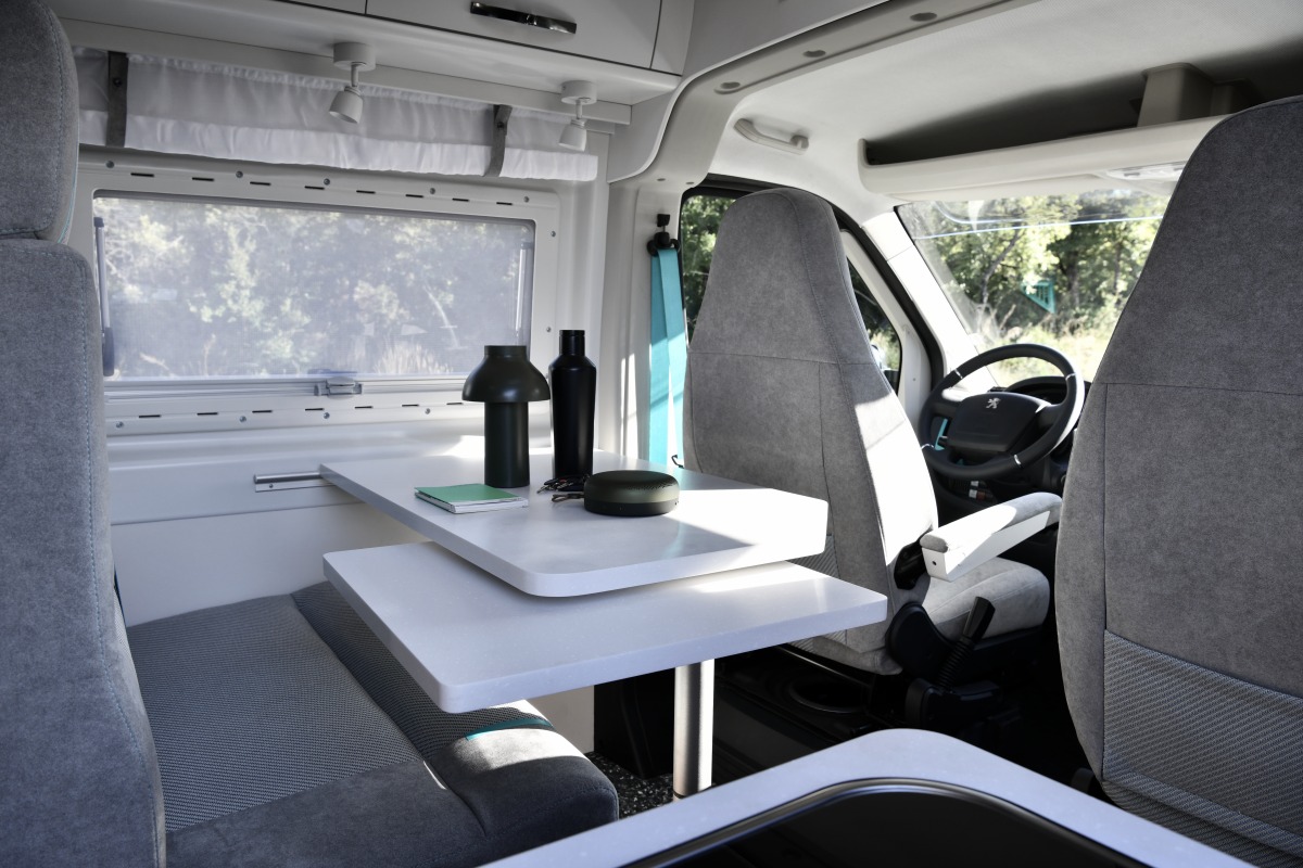 Салон Boxer 4x4 Concept отделан особыми легко моющимися материалами, пространство за передними сиденьями может быть преобразовано мини-столовую для «пикника на обочине».