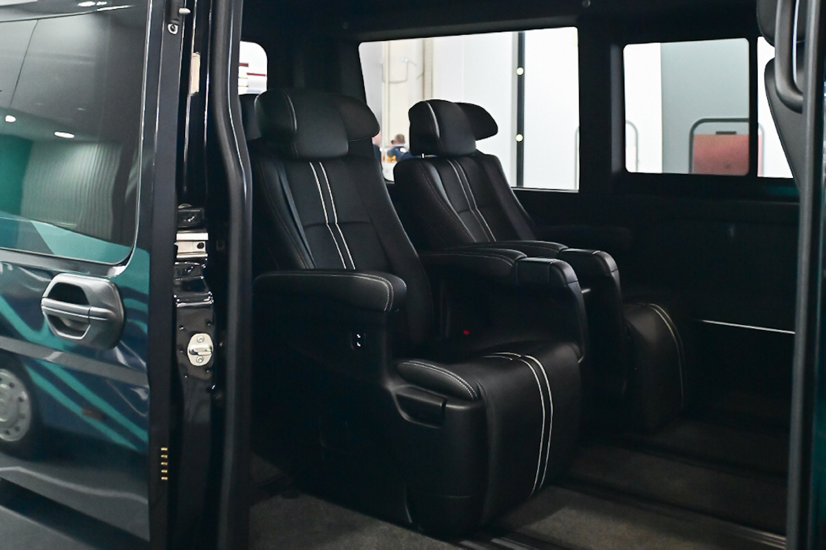 «Соболь NN» в VIP-комплектации рассчитан на перевозку четырёх пассажиров. В списке доступного для микроавтобуса оснащения – сиденья повышенной комфортности, консоли с интегрированной беспроводной зарядкой, а также розетками USB и Type-C; потолочное светодиодное освещение и тонировка стекол со светопропускаемостью 5%; боковая выдвижная подножка с подсветкой, а также двойной пакет термо-, шумо- и виброизоляции кузова.