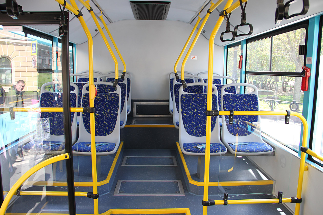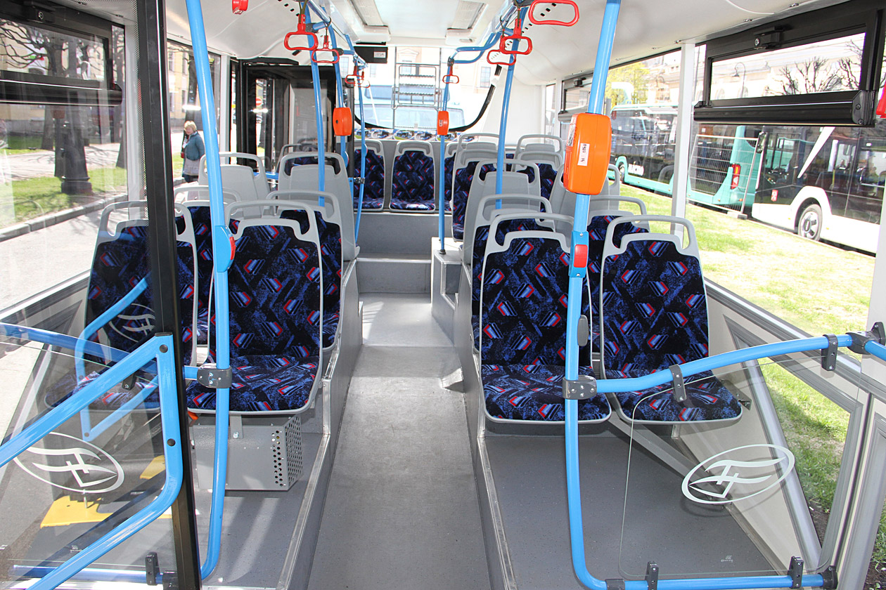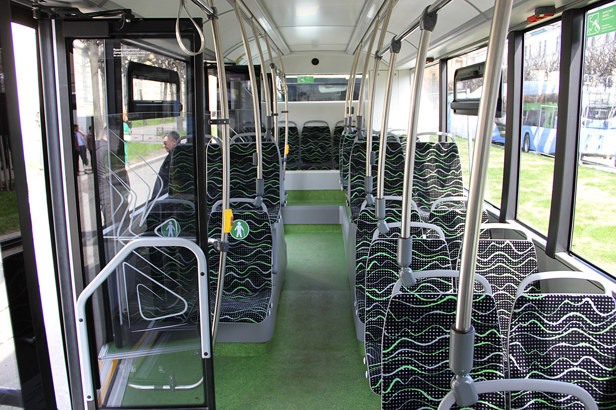 Интерьер машины также обновился. В электробусе установлены более эргономичные сиденья, для эффективной шумоизоляции в отделке применены композитные алюминиевые панели. Внутри стало больше места благодаря оптимизации компоновки батарейных отсеков, часть из которых перенесена из салона в унифицированные модули на крыше.