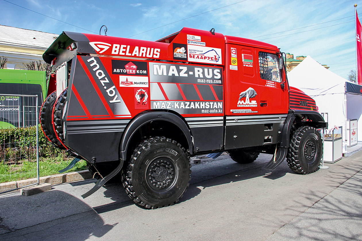 МАЗ в своей экспозиции представил автобусы большого класса МАЗ‑203047 в дизельном исполнении и электробус МАЗ‑303Е20. В качестве шоу-стоппера служил капотный спортивный грузовик МАЗ‑6440RR, который в последние годы стал достойным конкурентом камазовской армаде в ралли-рейдах.