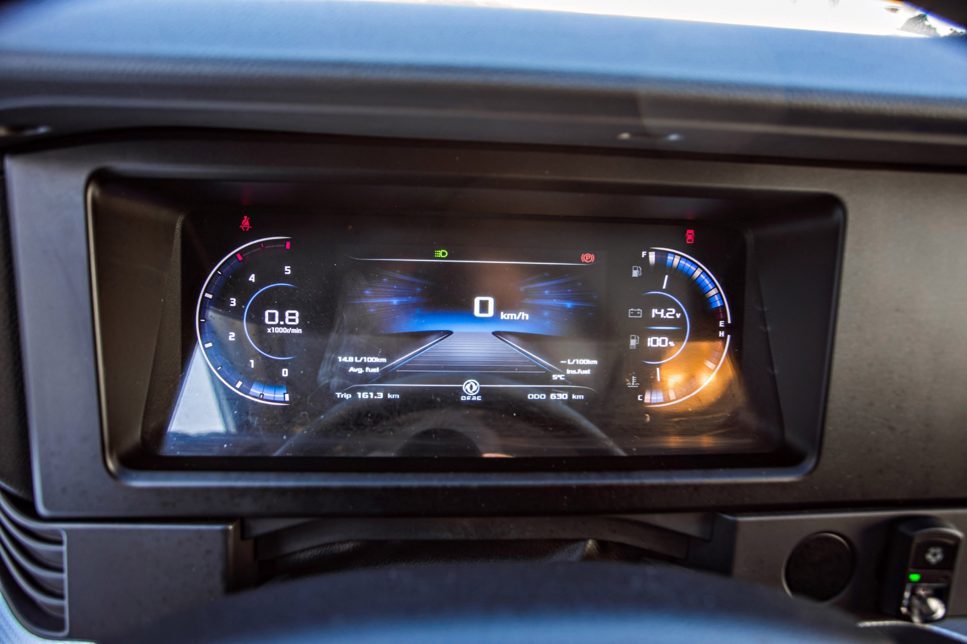 Удивительно, но китайцам удалось сделать K33 непохожим на другие LCV даже внутри, хотя, казалось бы, что может быть необычного в утилитарном фургоне? Ну, например, электронная приборная панель. Да, в легковом сегменте это уже не в диковинку, но среди вэнов в России такого решения не найти. Кроме того, даже многие китайские производители «легковушек» не очень успешно справляются с задачей сделать электронную «приборку» читаемой. А вот Dongfeng сделал хоть и простенький, зато очень даже наглядный щиток приборов, не перегрузив его при этом информацией.