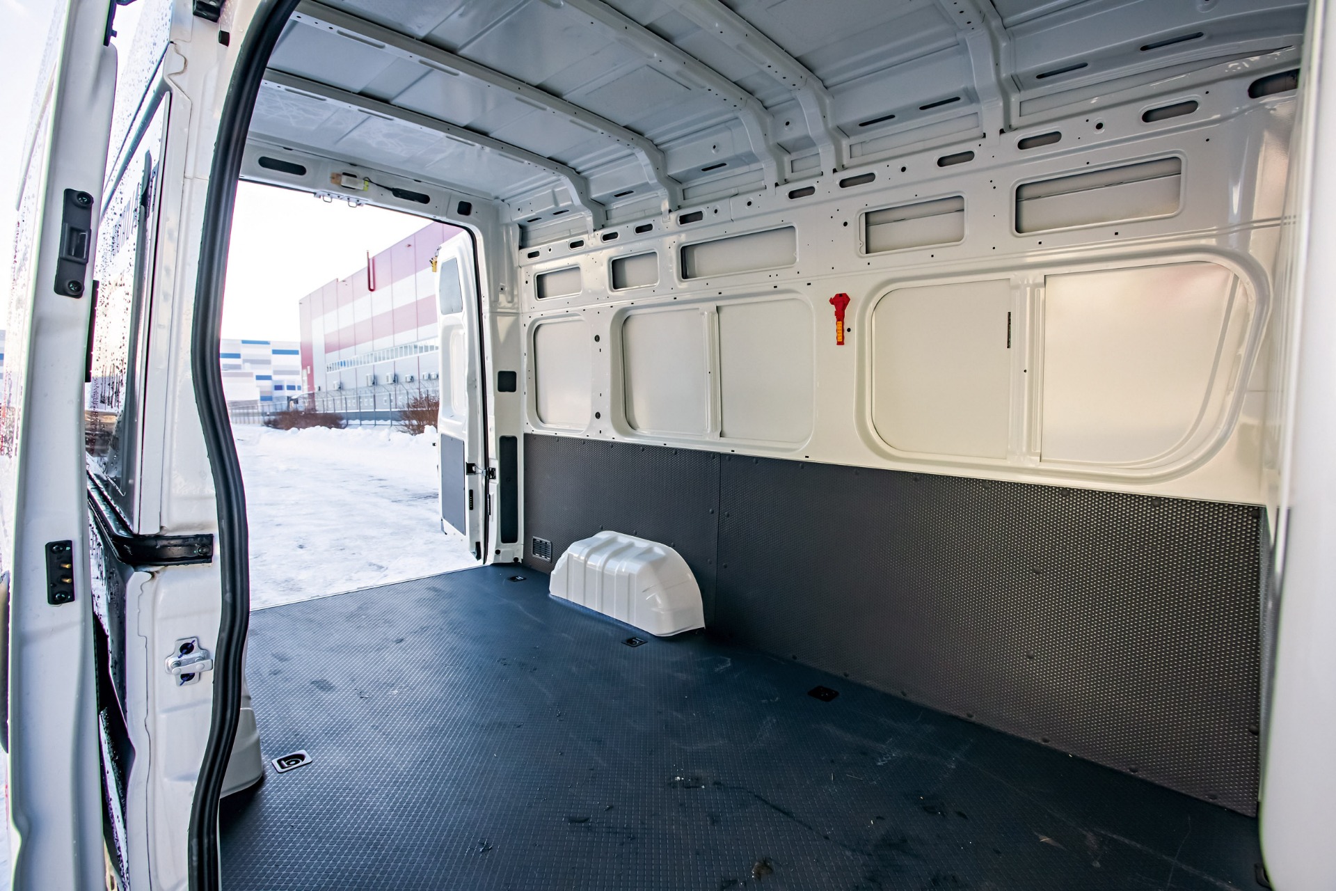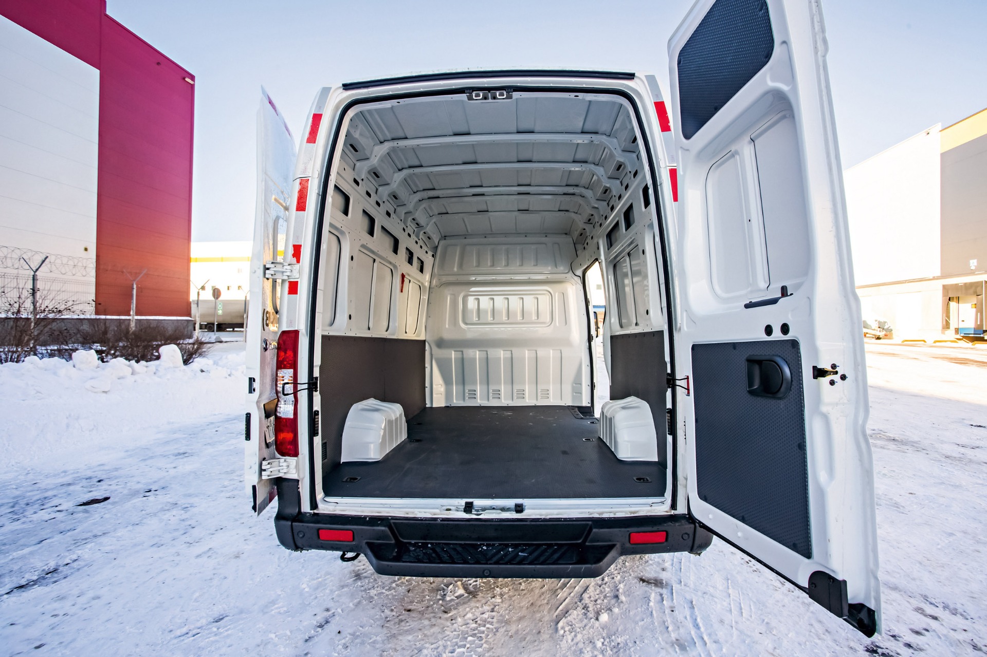 Для погрузочно-разгрузочных работ передний привод также является преимуществом, так как позволяет снизить погрузочную высоту. Так, например, на нашем фургоне в районе проема задних распашных дверей высота погрузки составляет 685 мм, в районе боковой двери — 570 мм.