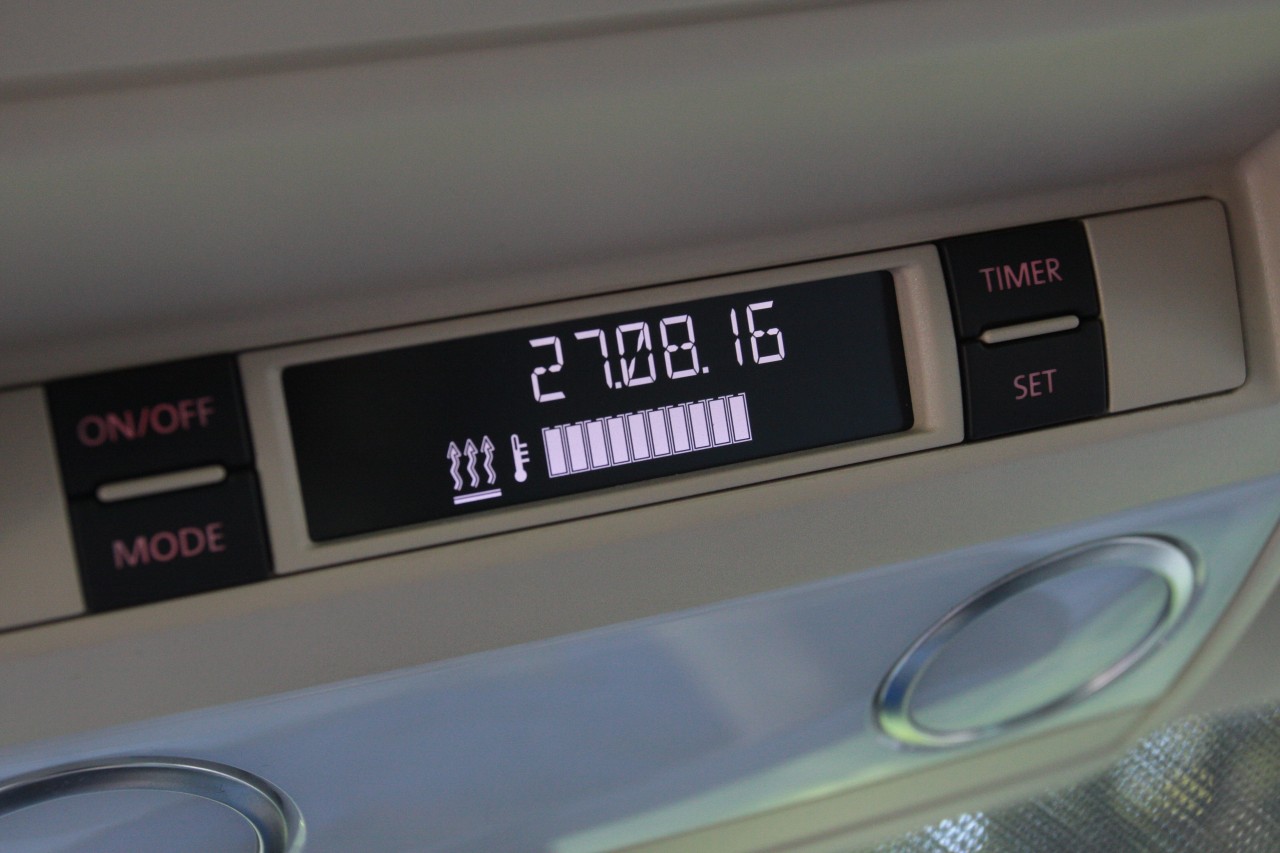 Микроавтобусные фишки – по два откидных подлокотника на каждое кресло и просто россыпь бардачков и карманов. Экранчик с кнопками под потолком – управление предпусковым подогревателем двигателя. В нашем климате незаменимая для дизеля вещь.