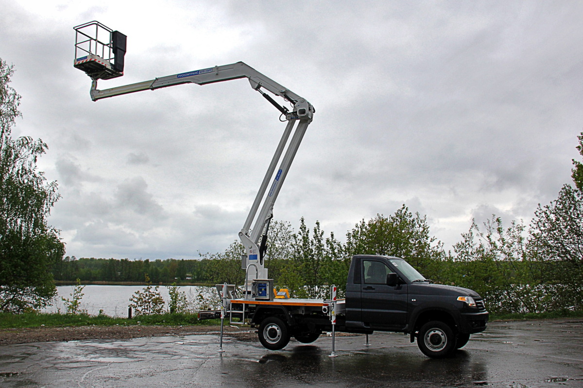Автогидроподъемник АГП-15РТ разработан партнером УАЗа, нижегородским заводом коммерческого транспорта «Рускомтранс», и адресован городским коммунальным службам.