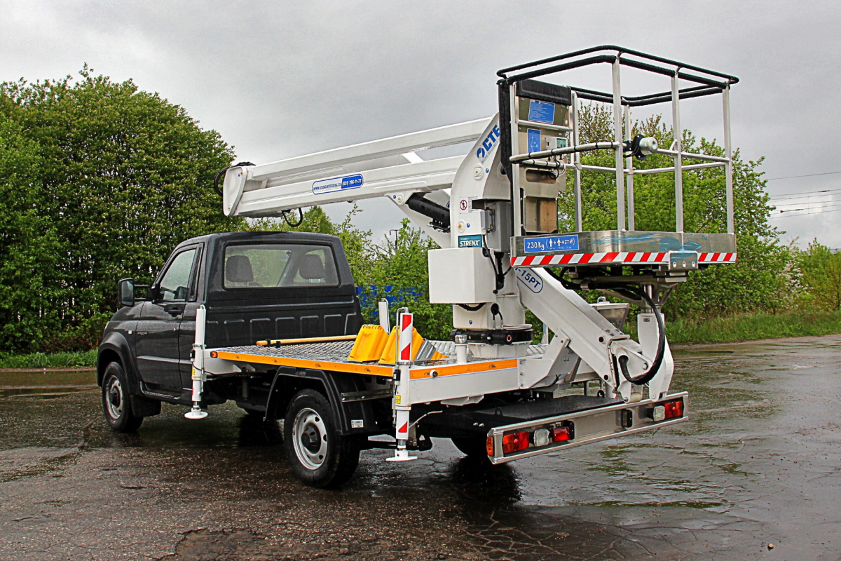 Ульяновский автозавод представил автогидроподъемник на базе коммерческого грузовичка «УАЗ Профи».