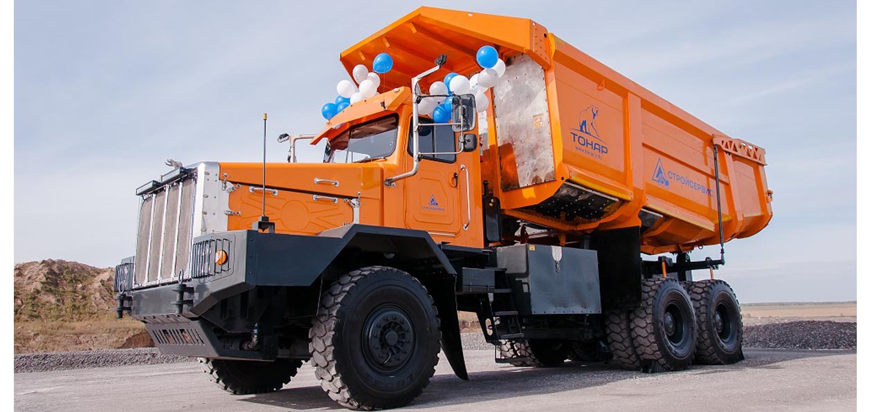 Уже сейчас на предприятии работают 25 единиц внедорожных самосвалов марки «ТОНАР» первого поколения грузоподъемностью 45 тонн.