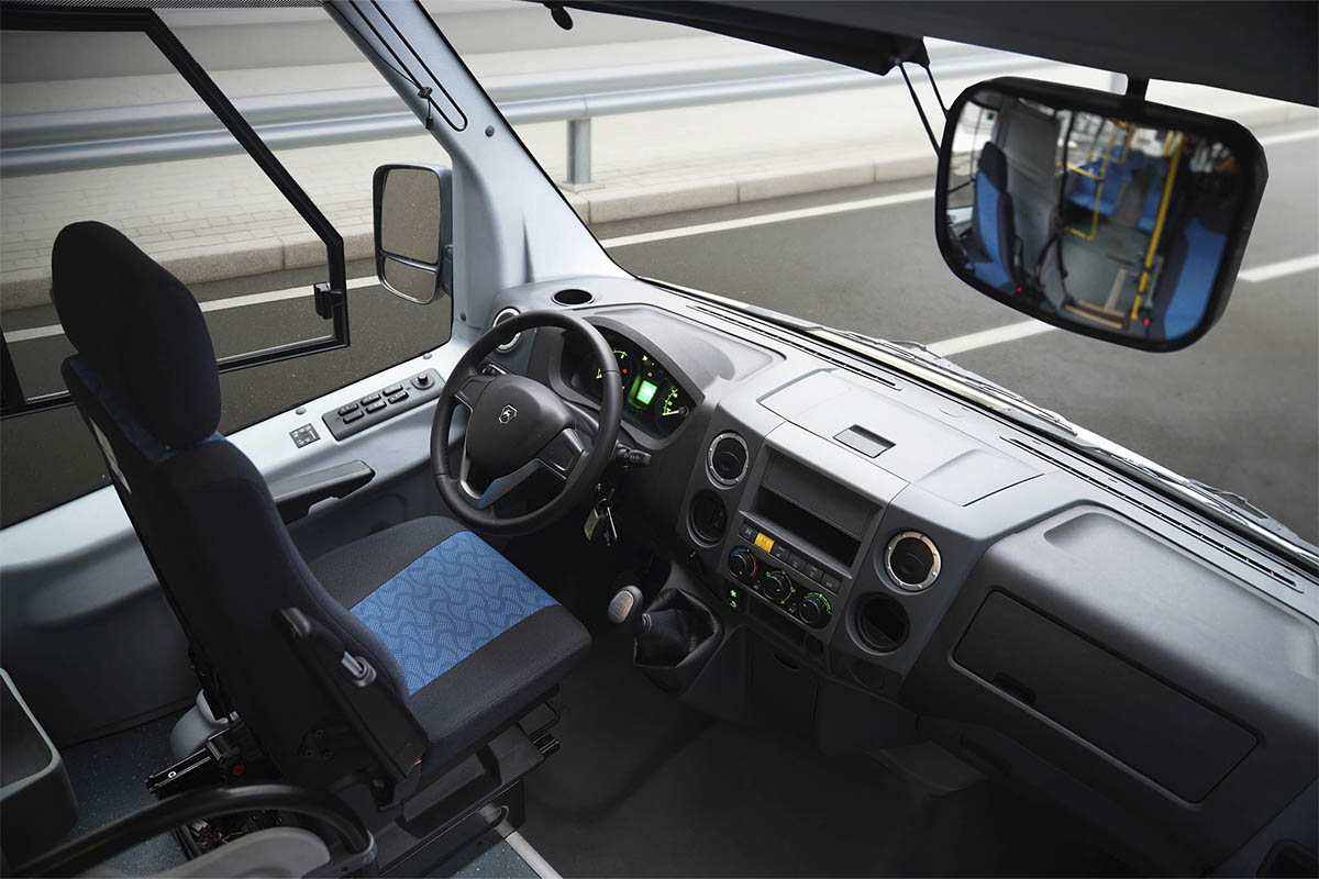 Вместимость автобуса — 32 пассажира. В салоне расположены 22 посадочных места: 19 основных сидений по ходу движения и три откидных места на накопительной площадке. Еще одно дополнительное служебное место находится в кабине рядом с водителем.