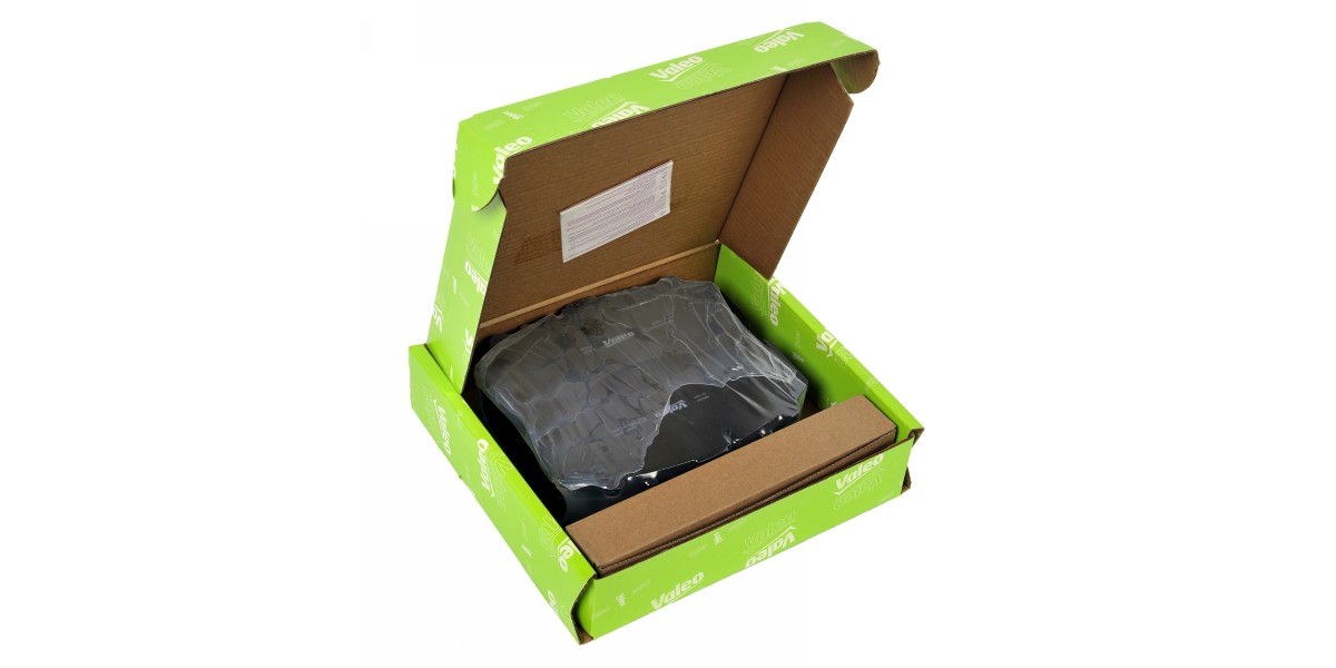 Valeo поставляет тормозные колодки в коробке из пятислойного картона с целью обеспечения безопасной транспортировки. Компания, по ее собственным данным, является «единственным брендом премиум-класса на рынке», предлагающим колодки, упакованные в коробку из термопластичного материала.