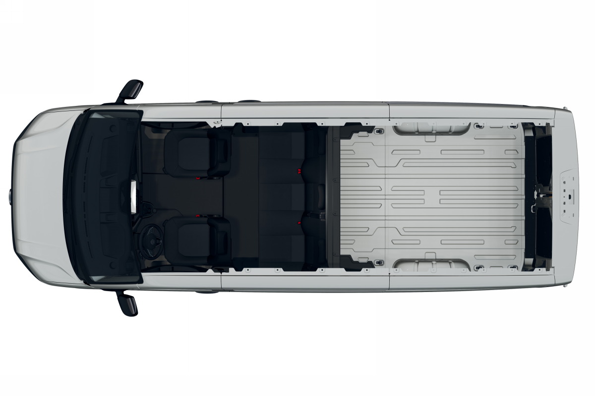 Crafter Kombi доступен в двух вариантах длины кузова: L3 (5986 мм, колесная база – 3640 мм) и L4 (6836 мм, колесная база – 4490 мм).