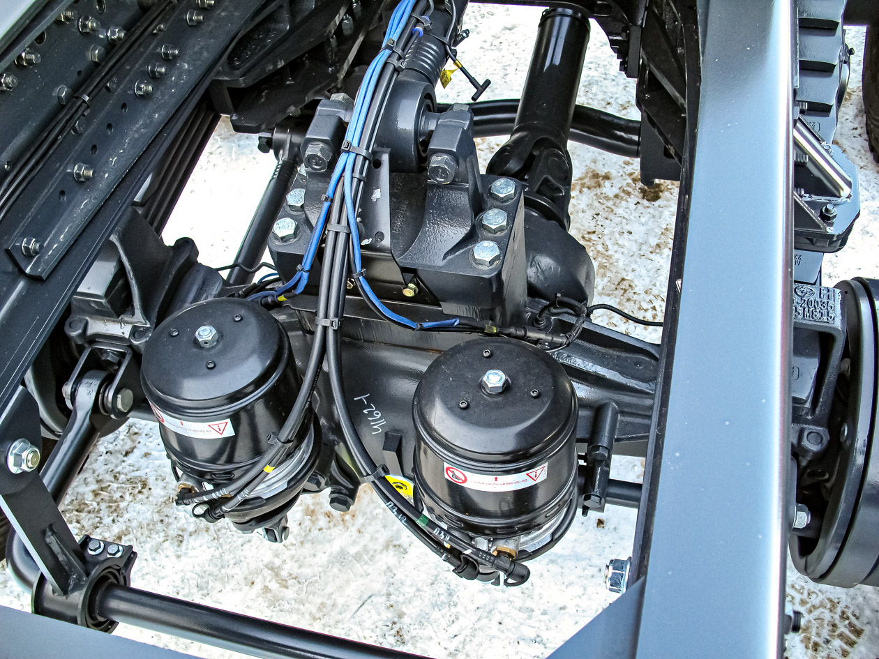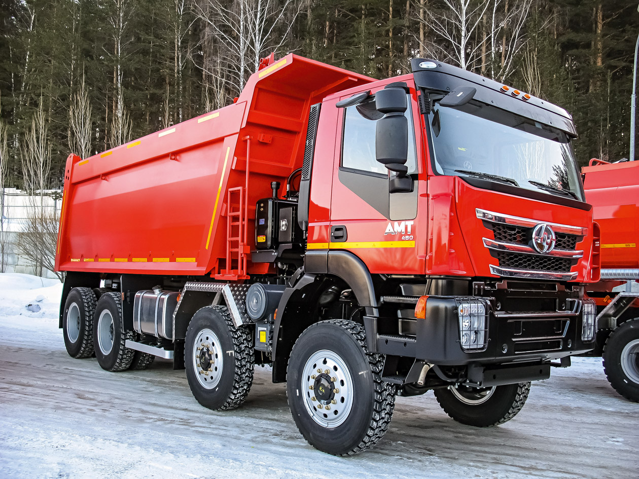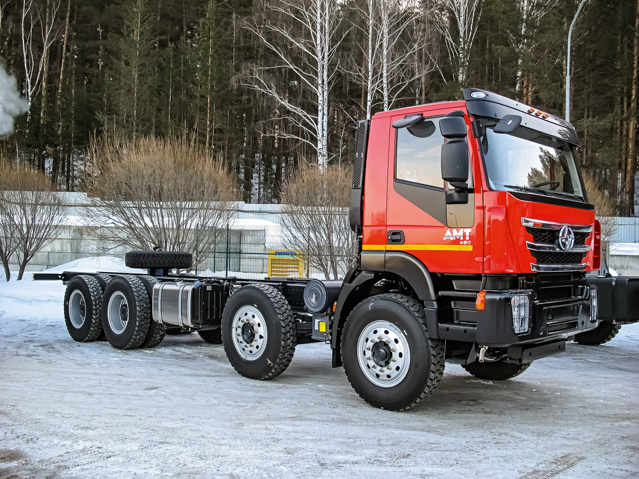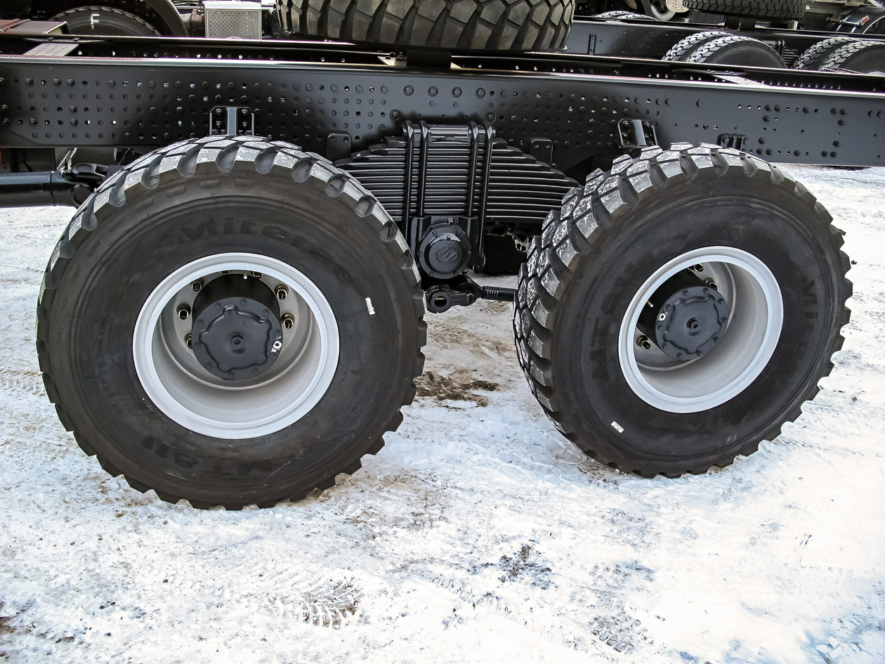 По нагрузкам на оси грузовики SAIC-Hongyan сборки «АМТ N.V.» тоже оказываются предпочтительнее Iveco Trakker. Там были передние ведущие мосты на 9 тонн, но у миасских грузовиков есть оси и на 9, и на 10 тонн. Еще круче ситуация с задними ведущими мостами: «АМТ N.V.» использует мосты с нагрузкой 13, 16 и даже 20 тонн. Вот так и набирается, допустим, на шасси 8х8 полная масса в 60 тонн: 10 + 10 + 20 + 20.