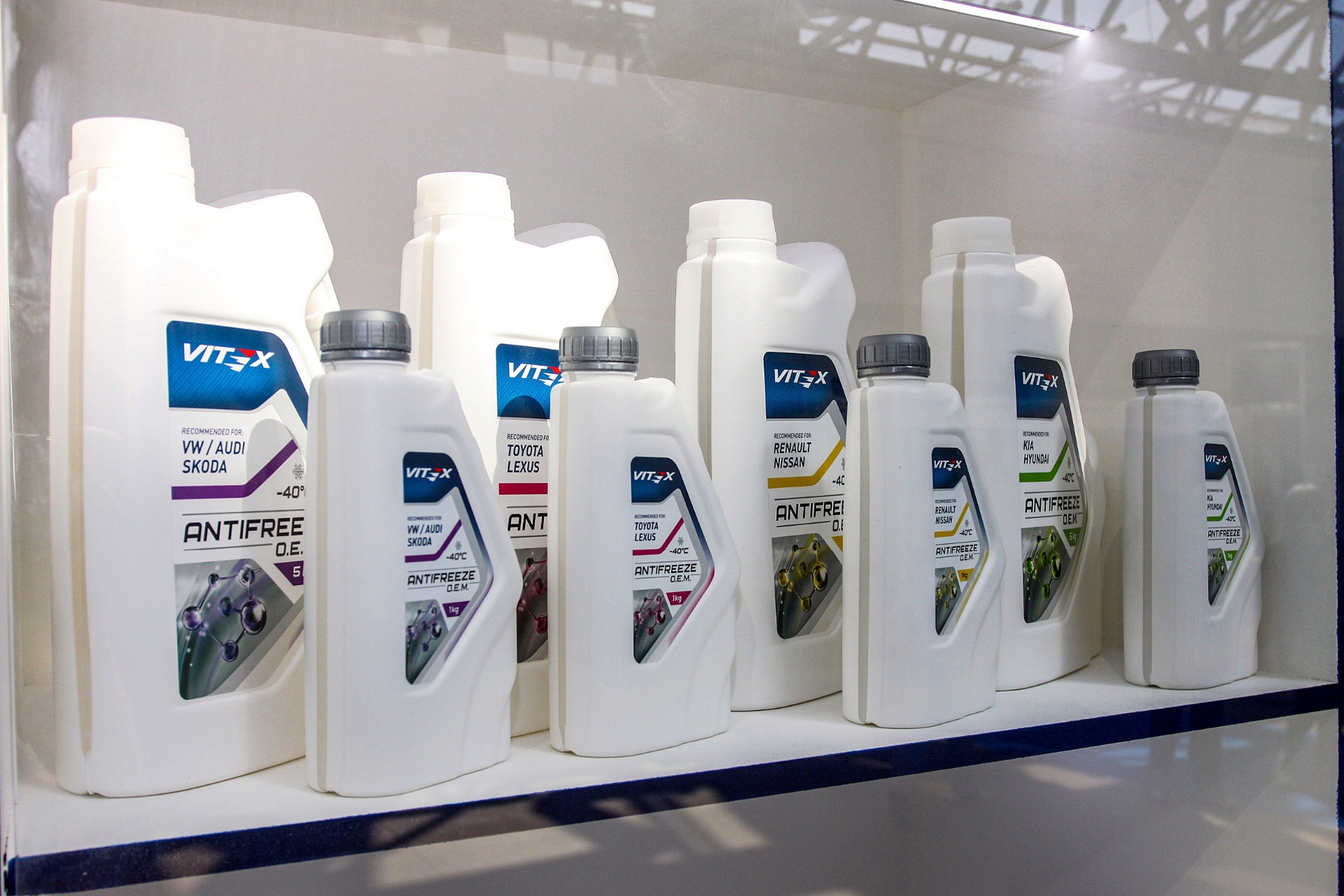 Компания Vitex привезла на MIMS Automobility Moscow фирменную линейку масел, автохимии и антифризов, выпускаемых под одноименной маркой на заводе компании в Дзержинске. Одной из главных новинок от Vitex стала линейка моторных масел для дизельных двигателей, применяемых на спецтехнике. Кроме того, компания представила легкомоторные, трансмиссионные и специальные масла, а также линейку масел для двухтактных и четырехтактных двигателей.