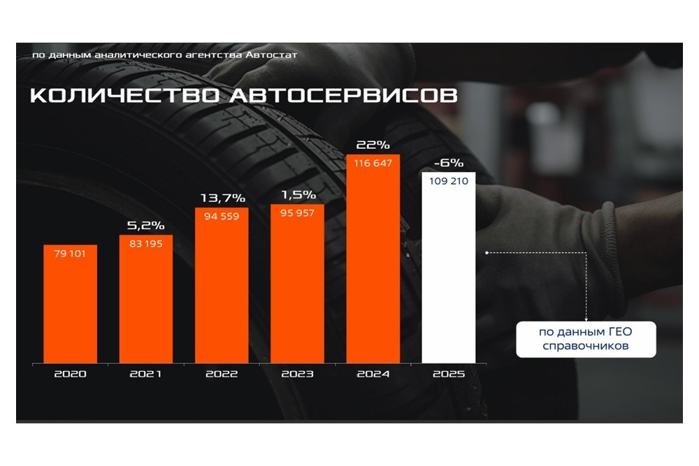 Количество автосервисов в России в 2025 году сократилось на 6% после рекордного роста числа точек годом ранее. Эксперты «Автостата» фиксировали непрерывный рост в течение четырех лет, однако сейчас рынок вступил в фазу структурной перестройки. В 2021 году в нашей стране было открыто 83 195 автосервисов, в 2022-м — 94 559, в 2023-м — 95 957, в 2024-м — 116 647. В 2025-м, по данным ГЕО-справочников, их насчитывается 109 210. «На фоне усложнения рынка и роста требований происходит естественное вымывание слабых игроков, которые заходили в отрасль без выстроенных процессов и долгосрочной стратегии на волне резкого спроса на услуги автосервисов. Те, кто не смог адаптироваться к новым условиям, в 2025 году уходят с рынка, освобождая место для профессиональных игроков», — добавила Т. Овчинникова.