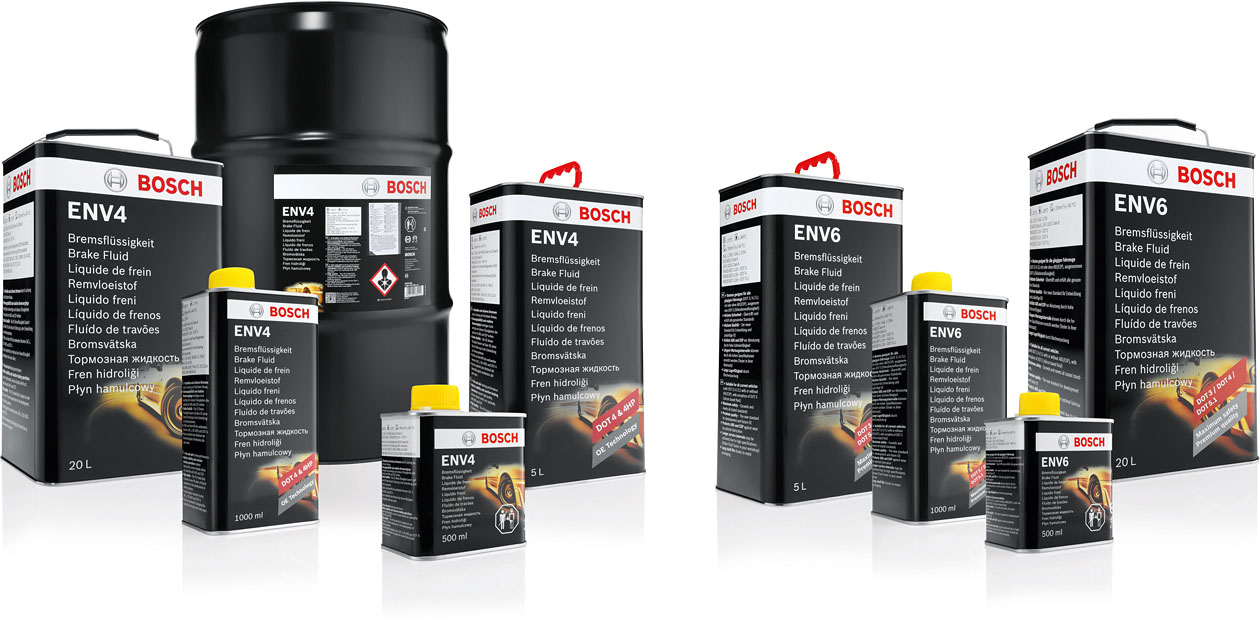 Усложнение электронных систем безопасности привело к повышению требований к тормозной жидкости. На скорость и точность срабатывания АБС и системы стабилизации влияет даже незначительное изменение вязкости жидкости или образование в ней пузырьков пара. Компания Bosch как разработчик первых систем ABS/ESP и их ведущий мировой поставщик в ответ на ужесточение вышеуказанных требований разработала новые виды тормозных жидкостей ENV4 и ENV6. Их основной отличительной особенностью является сочетание пониженной вязкости с более высокой температурой кипения и высокой смазывающей способностью по сравнению с аналогами стандартов DOT. Кроме того, интервал замены ENV6 составляет три года — на год больше, чем у стандартных жидкостей. Так что применение современных тормозных жидкостей оправданно не только с точки зрения их характеристик, но и с точки зрения экономии.