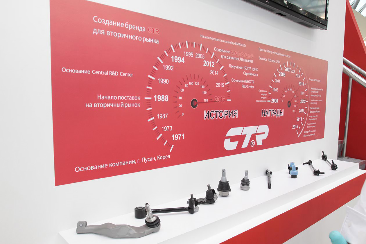 «Компания CTR известна в первую очередь как производитель деталей подвески и рулевого управления для автомобилей азиатских брендов: японских и корейских. На MIMS 2017 мы представили линейку компонентов для европейских и американских машин и подготовили специальный каталог подобных деталей. Каждая витрина на нашем стенде посвящена определенной модели автомобиля: Audi A3, Ford Focus, Opel Corsa D, Volkswagen Polo V — с полным перечнем того, что у нас есть для этих машин».