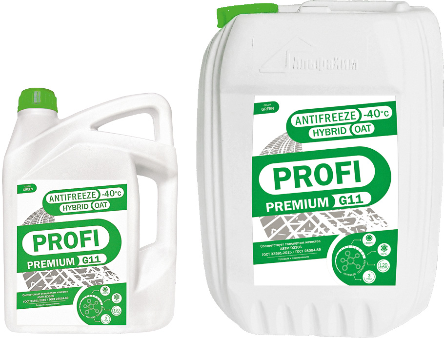 Антифризы серии PROFI PREMIUM G11 изготавливаются по гибридной (НOAT) технологии, то есть в их составе присутствуют как органические, так и неорганические присадки. Последние обладают оптимальными смазывающими свойствами, а органические присадки активизируются в точках возникновения коррозии, обеспечивая тем самым разумный расход ингибиторов коррозии. Соответствуют стандарту ASTM D3306.