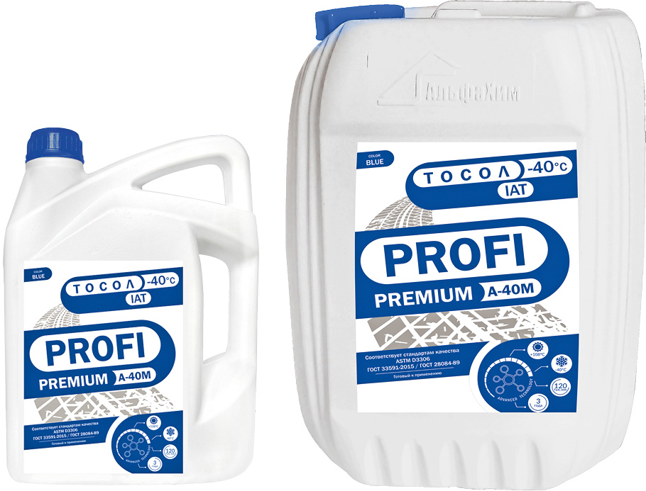 Наконец, универсальные охлаждающие жидкости PROFI PREMIUM ТОСОЛ производятся по традиционной (IAT) технологии, где используются традиционные неорганические присадки, которые в процессе эксплуатации образуют на поверхности системы охлаждения защитный слой, обеспечивая защиту от коррозии черных и цветных металлов. PROFI PREMIUM ТОСОЛ предназначен для систем охлаждения двигателей автомобилей отечественного производства и сельскохозяйственной техники. Соответствует российскому ГОСТ 28084-89.