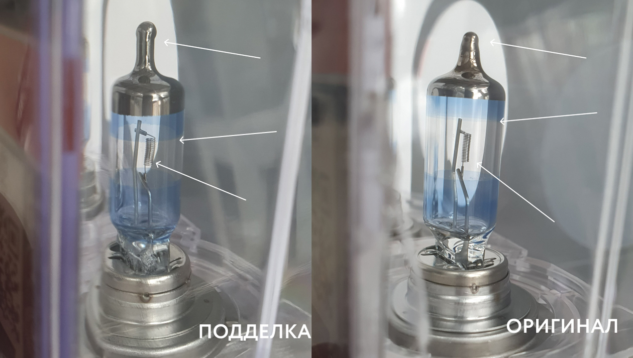 Например, при установке поддельных автоламп многократно увеличивается риск ДТП в темное время суток. Лампы, изготовленные кустарным способом, не обеспечивают расчетного распределения света, что повышает вероятность аварийных ситуаций. Из-за нарушения технологии нить накала размещается некорректно, что ведет либо к ослеплению встречной полосы, либо к недостаточной освещенности дороги перед автомобилем.