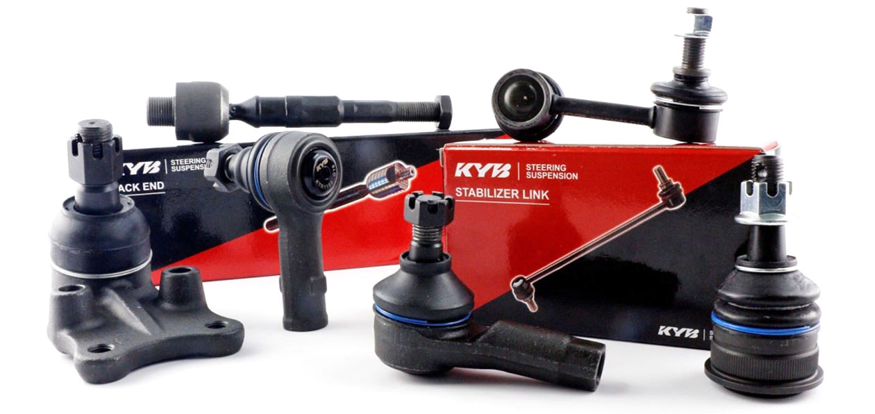 При замене подвески KYB предлагает отныне полный комплект деталей: амортизаторы, пружины, защитные комплекты, верхние опоры, рулевые тяги и наконечники, стойки стабилизатора и шаровые опоры.