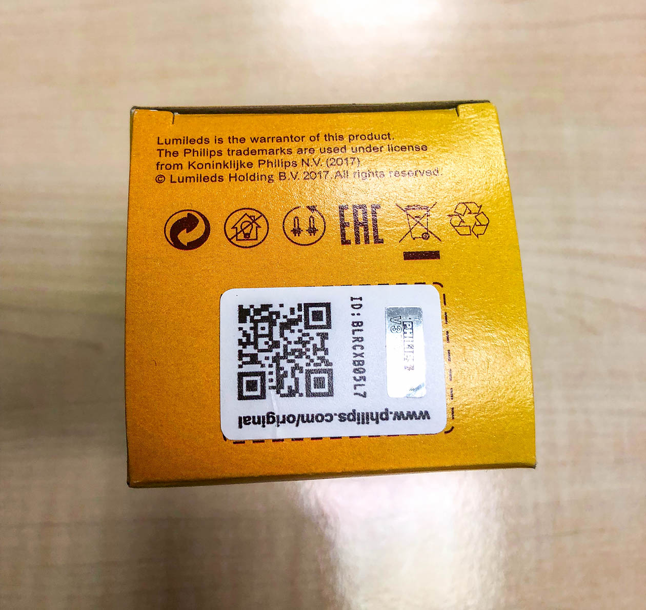 У компании Philips есть оригинальная система защиты. У каждой ксеноновой и светодиодной лампы бренда есть уникальный защитный номер в виде голограммы и QR-код на упаковке, по которым можно проверить подлинность изделия.