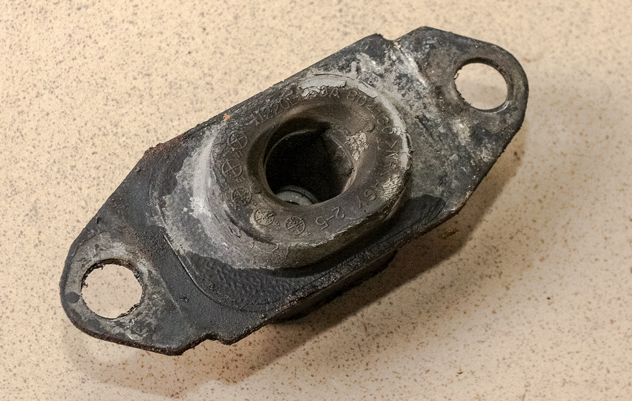 За 200 тысяч км пробега резиновые элементы подушки практически потеряли демпфирующие свойства (фото слева)