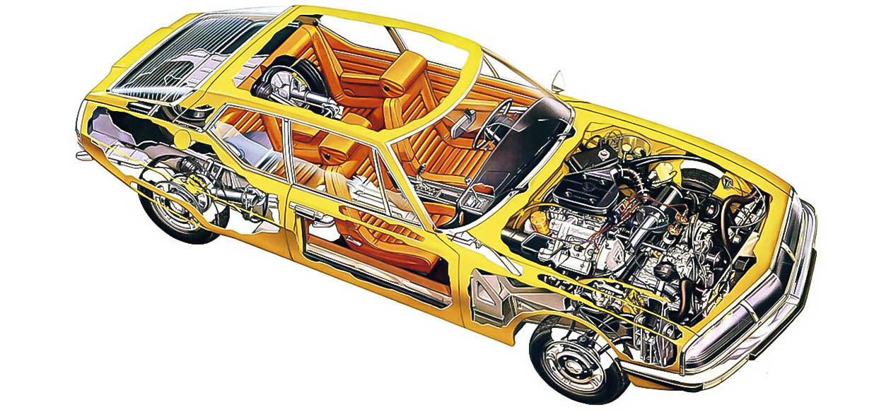 Это был не усилитель, а настоящий сервопривод. На первый взгляд просто реечный рулевой механизм, но с громоздкой проставкой между валом руля и самой рейкой. Там-то и скрывалось маленькое чудо. Наверное, не секрет, что машины Citroen оснащались и оснащаются гидропневматической подвеской. А такие конструкции обязательно имеют в своем составе гидроаккумуляторы и гидронасос высокого давления. Конструкторская идея пошла по оригинальному пути. Вместо установки объемного гидронасоса использовали систему высокого давления. Золотник, в зависимости от разницы между положением рулевого колеса и управляемых колес, подает необходимое количество жидкости в один из гидроцилиндров рулевой рейки. Механической связи между рулевым колесом и рейкой в нормальном состоянии нет, она появляется только при отсутствии давления в гидросистеме. Ну а реактивное усилие на руле полностью искусственное. Оно формируется отдельным эксцентриком с гидравлическим приводом и зависит от скорости автомобиля, определяемой центробежным гидравлическим регулятором, и угла поворота руля.