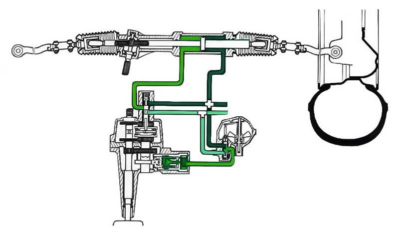 С тех пор конструкция усилителя по сути изменилась мало. Насос создает постоянный поток гидравлической жидкости, а золотниковая система, использующая в качестве датчика момента торсион, при возникновении момента подает жидкость к исполнительному цилиндру, помогая вращать руль. Попытки реализовать другие принципы работы предпринимались, но не получили распространения в автомобилях.
