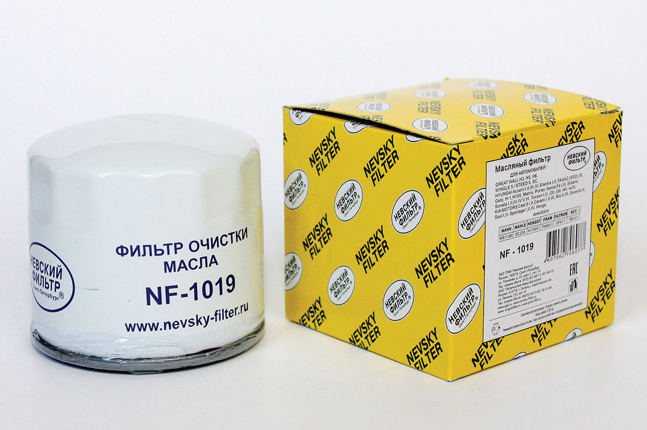 Фильтр модели NF-1019 предназначен уже для иномарок, в основном японской и корейской сборки. Оформление коробки — в том же стиле, что и у NF-1003, минималистичное и с хорошей информативностью. Цвет корпуса белый, нанесены данные о дате выпуска и тестировании, о производителе и модели, а также пиктограммы, поясняющие особенности процесса замены фильтра. Качество завальцовки высокое. Уплотнительное кольцо прямоугольного сечения приклеено. Внутри фильтра можно увидеть обильные следы клея-герметика на верхней части фильтровальной катушки, черный пластиковый байпасный клапан и черную мембрану противодренажного. Качество резьбы высокое, следов мехобработки не наблюдается.