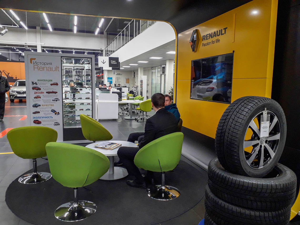 Дилеров Renault в Петербурге осталось три, а самым узнаваемым и самым распространенным (с пятью центрами) является «Петровский автоцентр». Собственно, один из его шоурумов и оказался самым близким к нам по месторасположению. Огромный автосалон с полным комплексом всех возможных услуг был переделан в свое время из другого центра — марки Peugeot, которой на российском рынке, в отличие от земляков, не очень везет.