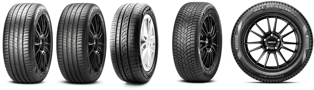 Шины Pirelli (слева направо): Cinturato P7, Cinturato P1 Verde, Formula Energy, Cinturato All-Season SF