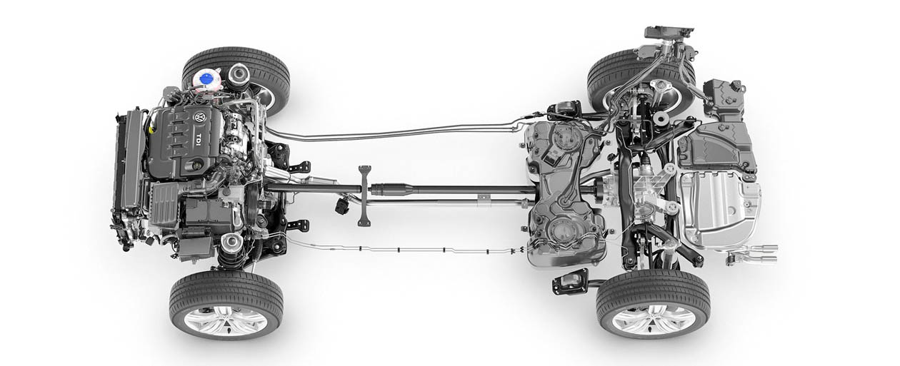 По умолчанию система On-demand функционирует в моноприводном режиме. Как только электроника получает сигнал о пробуксовке ведущих колес, с помощью электронно-управляемой многодисковой муфты момент подается на вторую ось. Дополнительно с помощью вспомогательных электронных систем может регулироваться и момент на каждом колесе.