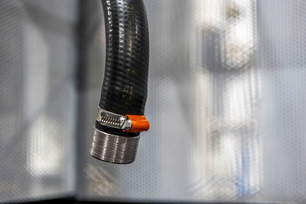 Помимо прочности, патрубки системы охлаждения должны также обладать морозостойкостью. Для проверки на потерю эластичности при заморозке мы поместили шланги на одни сутки в термокамеру, где создается и поддерживается температура –40 °C.