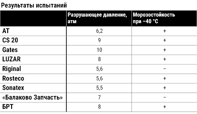 Ну а победителем теста мы признаем образец марки Gates, поскольку только этот патрубок выдержал давление в 10 атм! Морозостойкость детали — также на высоком уровне.