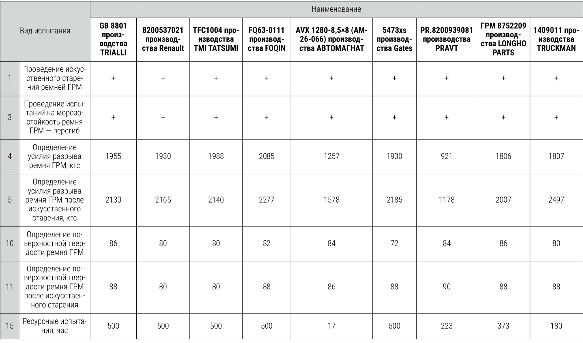 Остальные ремни — брендов Gates, Trialli, Renault, TMI Tatsumi, FOQIN — успешно выдержали 500 часов ресурсных испытаний.