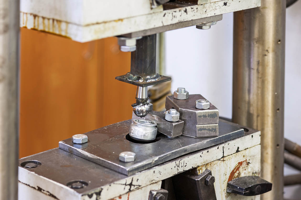 Согласно ГОСТу, основные характеристики шаровых шарниров — сила вырывания и сила выдавливания шарового пальца из корпуса. Данное испытание мы проводили на универсальной машине растяжения-сжатия Р10.