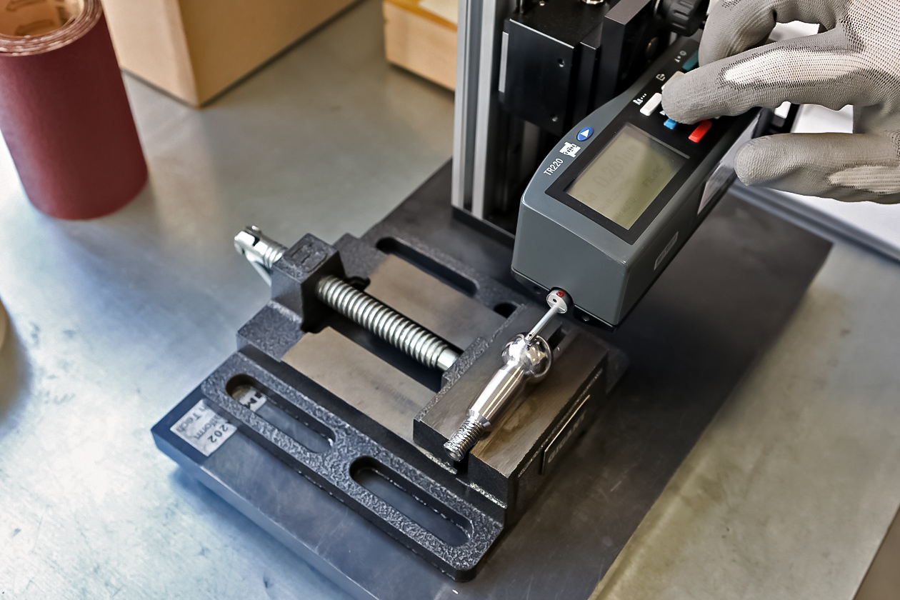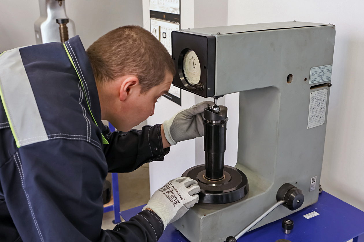 Твердость пальцев рулевых наконечников мы замеряли на твердомере ТР‑5006-М по методу Роквелла. Испытания показали, что все участники имеют вполне достаточную твердость. Напомним, что высокая равномерная твердость имеет значение, поскольку предотвращает образование трещин. Соответственно, ресурс такого наконечника будет больше, чем у экземпляра с невысокой твердостью.