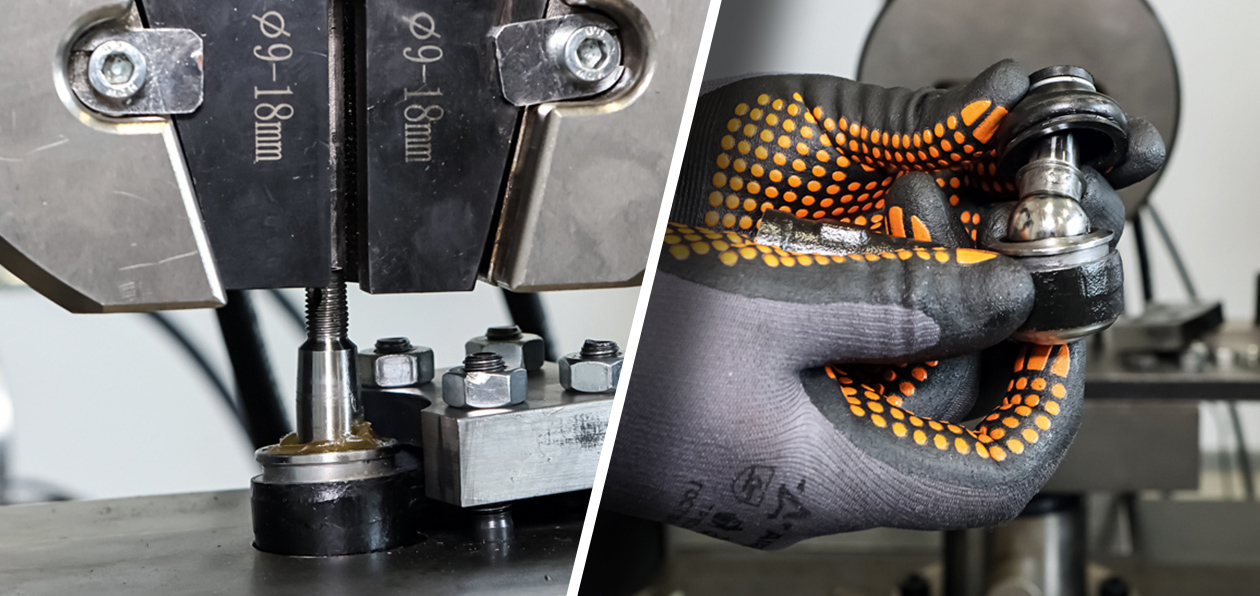 Минимально допустимые значения усилий вырыва пальца из корпуса шарнира указаны в приложении А к ГОСТу и зависят от диаметра шарового пальца. У испытанных нами рулевых наконечников диаметр шара составлял от 22 до 25 мм, поэтому, согласно ГОСТу, и требования по минимальным значениям к ним различаются. Сразу отметим, что, по словам технических специалистов, которые следили за правильностью проведения теста, усилие вырыва должно в первую очередь соответствовать ГОСТу. Да, конечно, хорошо, когда эти значения высокие, но напрямую влиять на работу и ресурс узла высокие значения не могут, так что нашей главной задачей было выяснить, соответствуют ли характеристики наших участников значениям ГОСТа.