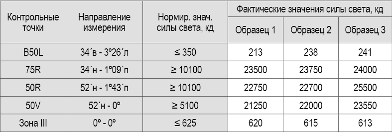 Для того чтобы получить максимально объективные данные, мы все-таки будем отталкиваться от общепринятых официальных стандартов, а точнее — от Правил ЕЭК ООН № 37-03 и основанного на них Государственного стандарта РФ, регламентирующего характеристики освещения для транспортных средств.