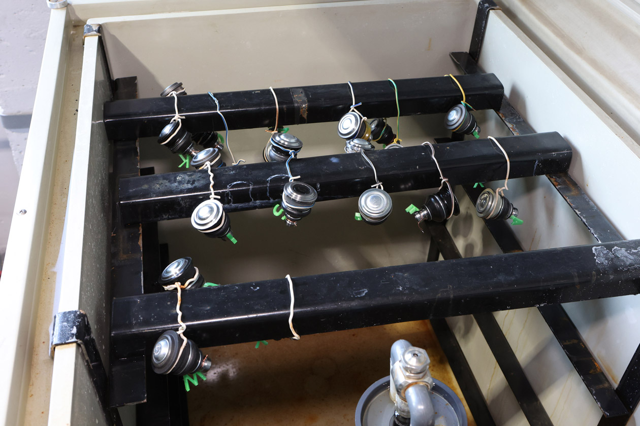 На заключительном этапе тестов всех деталей подвески мы в обязательном порядке проводим проверку коррозионной стойкости в камере соляного тумана Weiss Technik SSC1000 с выдержкой 96 часов в 5%-ном нейтральном соляном тумане. На этом этапе особенно порадовала шаровая CTR: она как будто и не подвергалась «пытке солью»! Чуть хуже показали себя образцы марок Sidem, Febest, Fixar, BGA. Худший результат со сплошной коррозией — у опор Finwhale и TRT.